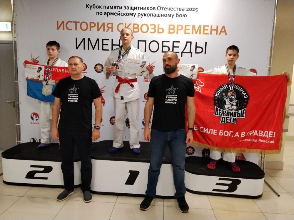 22 ноября спортсмены секции Рукопашный бой ( тренер А.А.Тыкин) приняли участие во Втором этапе Кубка памяти защитников Отечества по армейскому рукопашному бою «История сквозь времена. Имена Победы», посвященного памяти Героя Российской Федерации гвардии капитана Рыбакова Максима Радиковича. В турнире участвовали 580 спортсменов, 44 команды, 9 регионов. Наши ребята отличились , заняв 2 и 3 места! Молодцы!