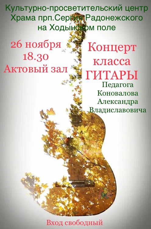 26 ноября в 18.30 кружок гитары Культурно-просветительского центра при Храме прп.Сергия Радонежского на Ходынском поле приглашает на Осенний концерт.