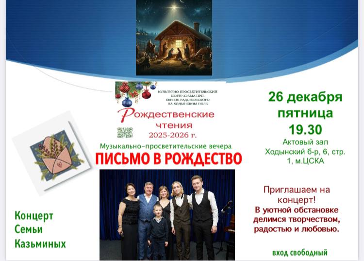 Приглашаем на концерт «Письмо в Рождество». В доброй уютной обстановке поделимся творчеством, радостью и предвкушением Праздника.