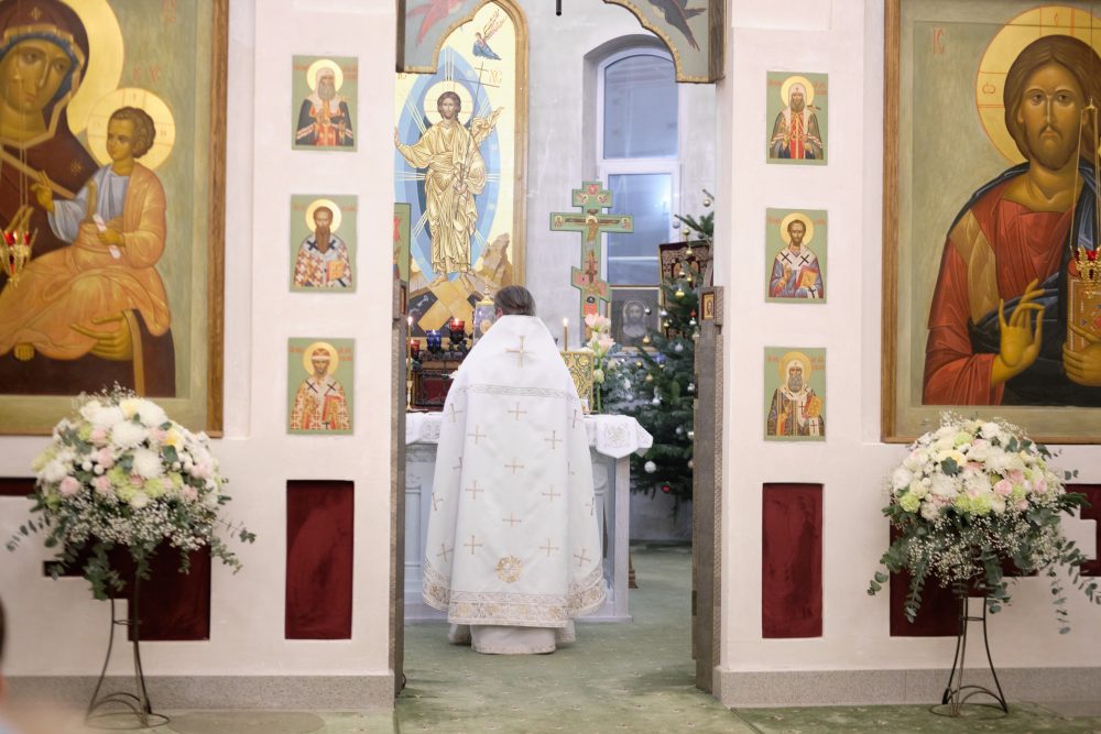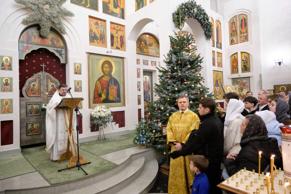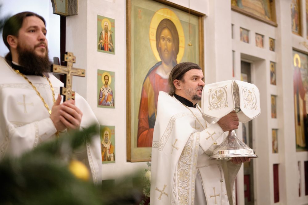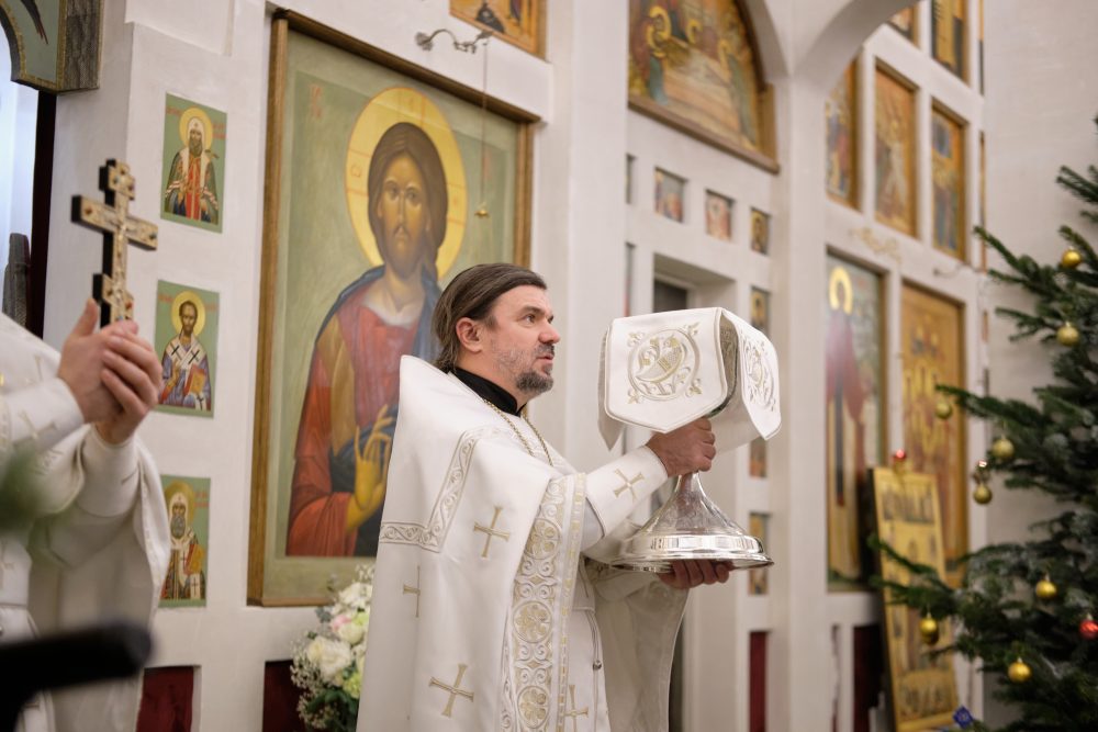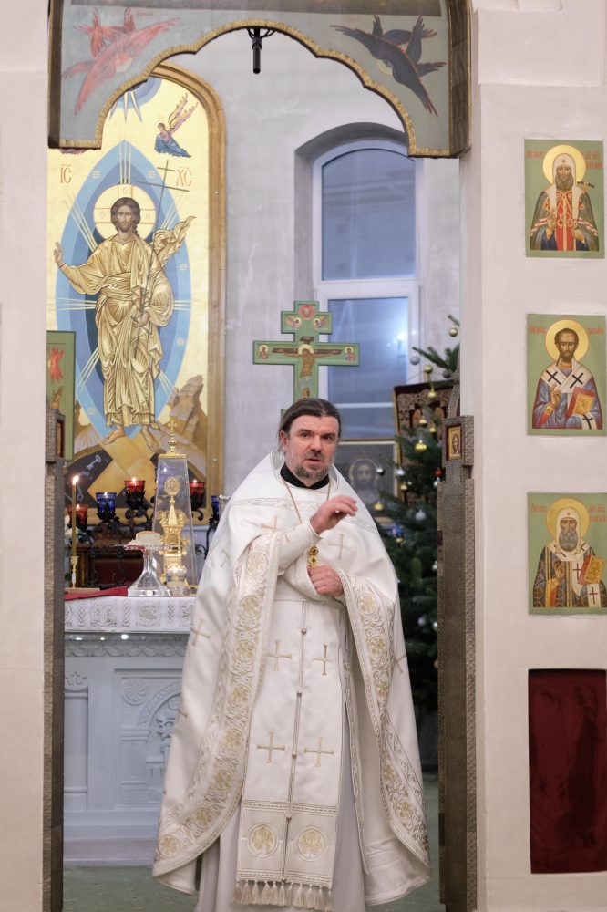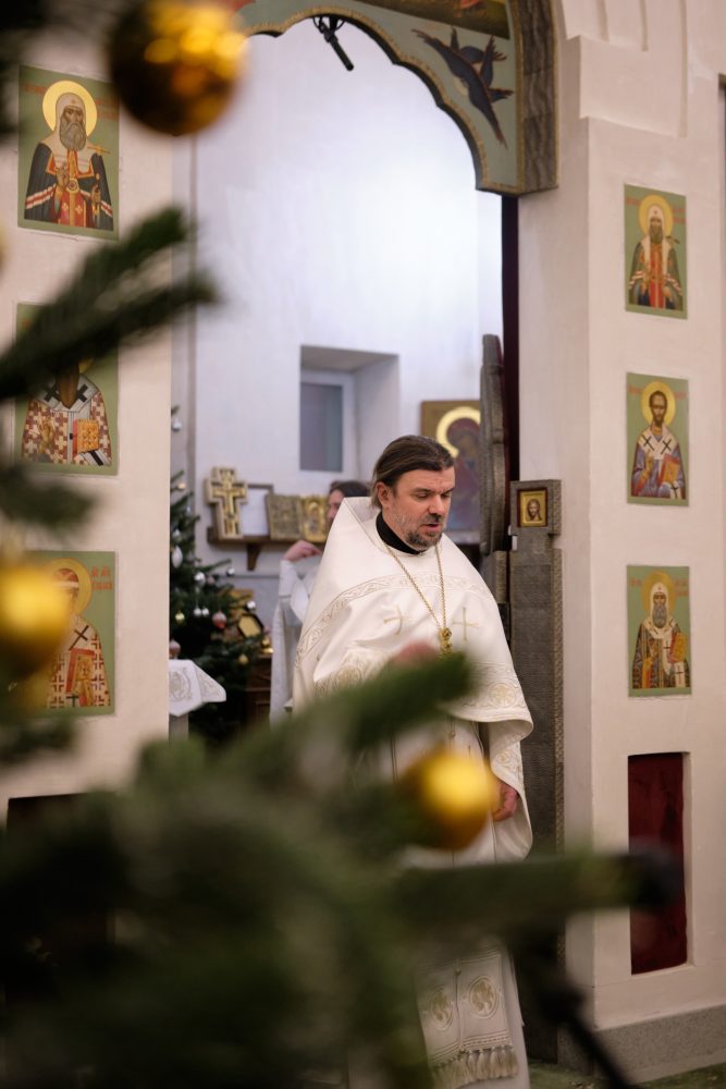 После сугубой ектении настоятель вознёс молитву о Святой Руси. На запричастном стихе Рождественское послание Святейшего Патриарха Московского и всея Руси Кирилла огласил настоятель храма протоиерей Василий Биксей.