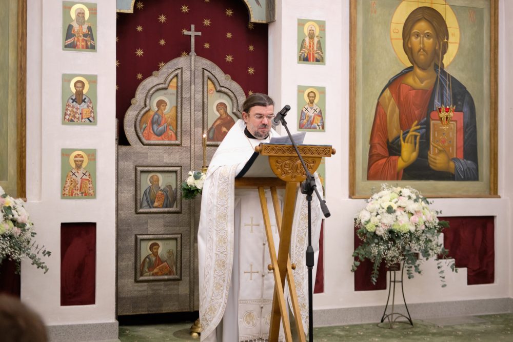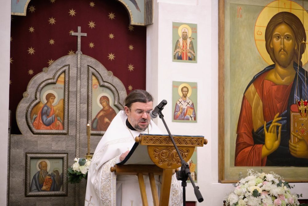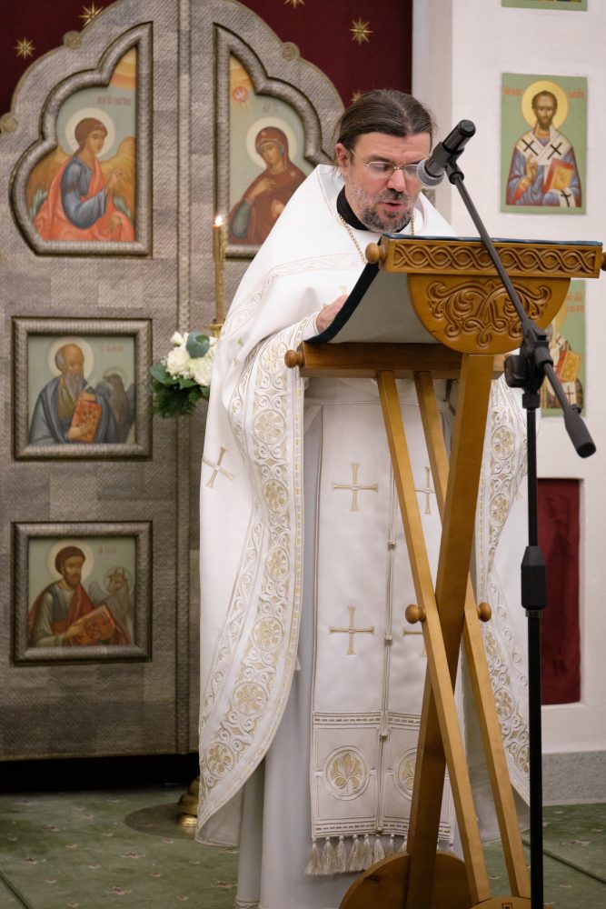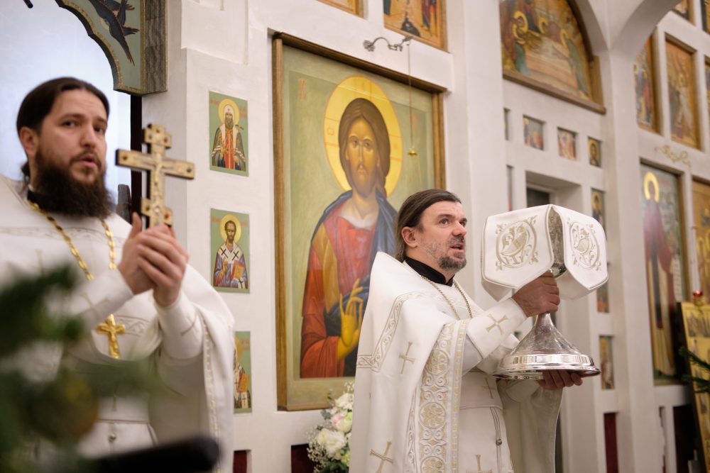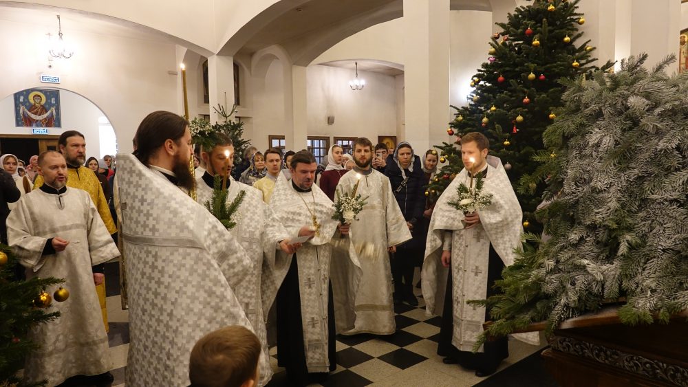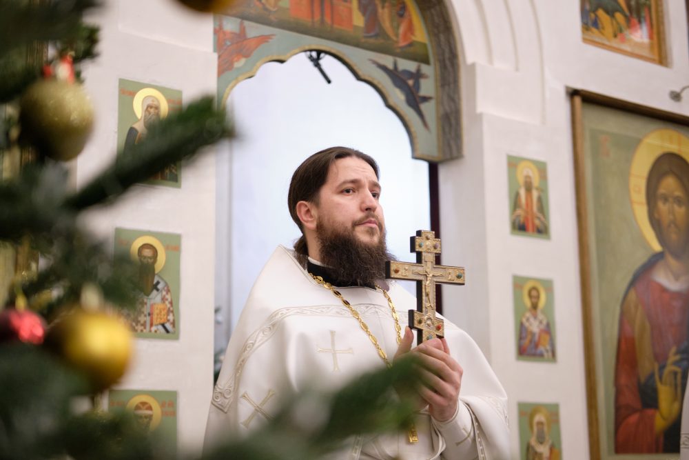 После сугубой ектении настоятель вознёс молитву о Святой Руси. На запричастном стихе Рождественское послание Святейшего Патриарха Московского и всея Руси Кирилла огласил настоятель храма протоиерей Василий Биксей.