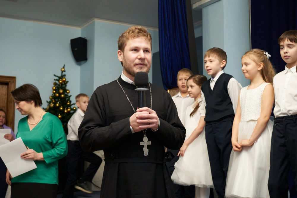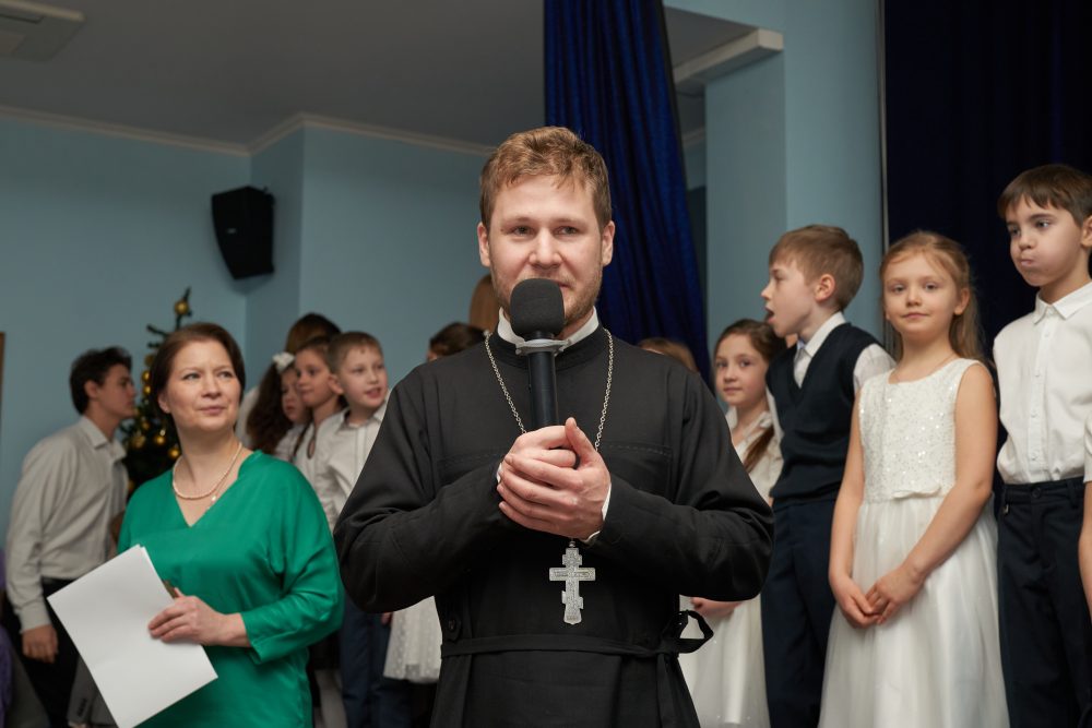 Священники храма — отец Сергий и отец Михаил поздравили детей и взрослых с Рождеством Христовым, со Святыми днями, рассказали, как правильно провести эти дни, как сохранить этот свет в будни, вместе со всеми порадовались талантам детей и подарили подарки участникам концерта.
