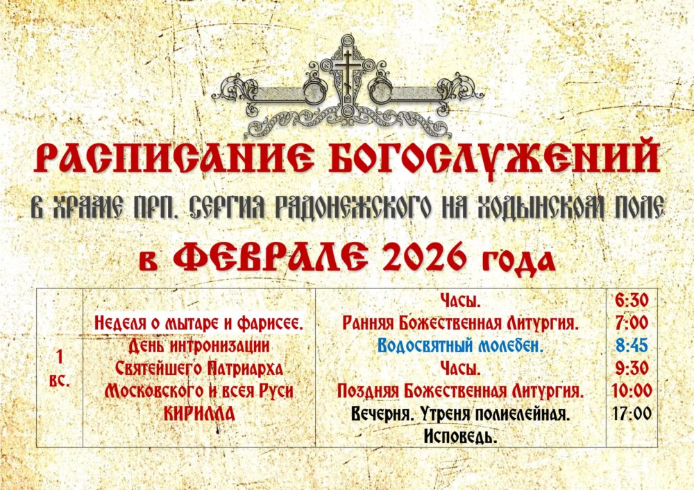 ХРАМ ПРП. СЕРГИЯ РАДОНЕЖСКОГО НА ХОДЫНСКОМ ПОЛЕ РАСПИСАНИЕ БОГОСЛУЖЕНИЙ (69175) Поделиться:ВКонтактеTelegramEmailПечатьЕлицы