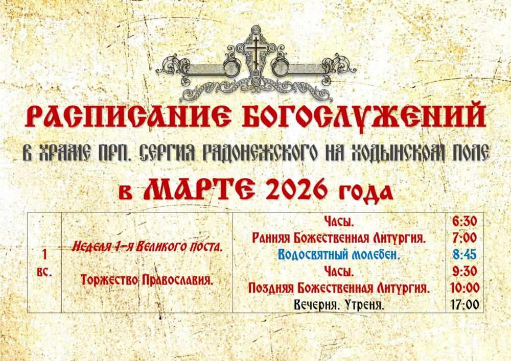 ХРАМ ПРП. СЕРГИЯ РАДОНЕЖСКОГО НА ХОДЫНСКОМ ПОЛЕ РАСПИСАНИЕ БОГОСЛУЖЕНИЙ (77340) Поделиться:ВКонтактеTelegramEmailПечатьЕлицы