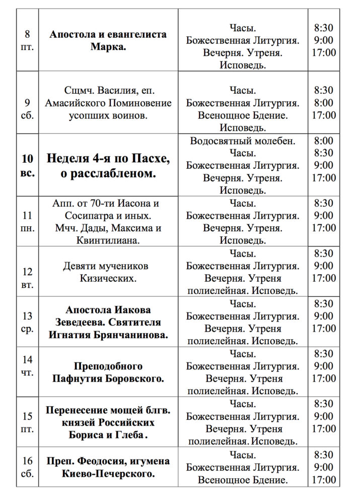 Расписание Май 2020г_2 sergiyhram 27.04.2020 (43) Поделиться:ВКонтактеTelegramEmailПечатьЕлицы « Назад Вперед »
