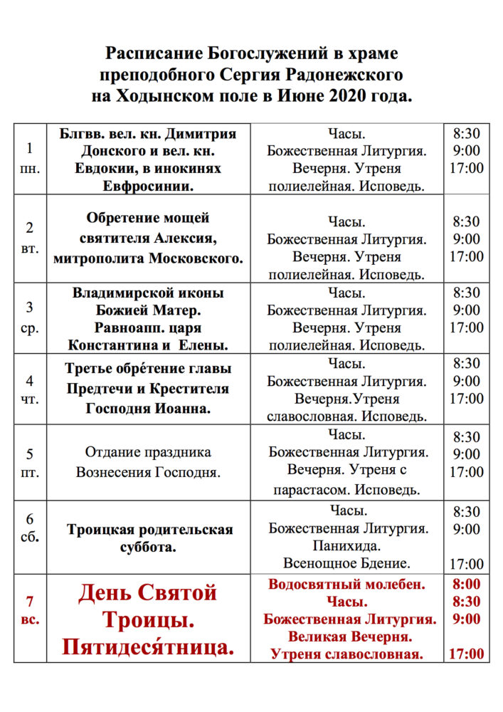 Расписание в ИЮНЬ_1 2020г. sergiyhram 28.05.2020 (69) Поделиться:ВКонтактеTelegramEmailПечатьЕлицы « Назад Вперед »